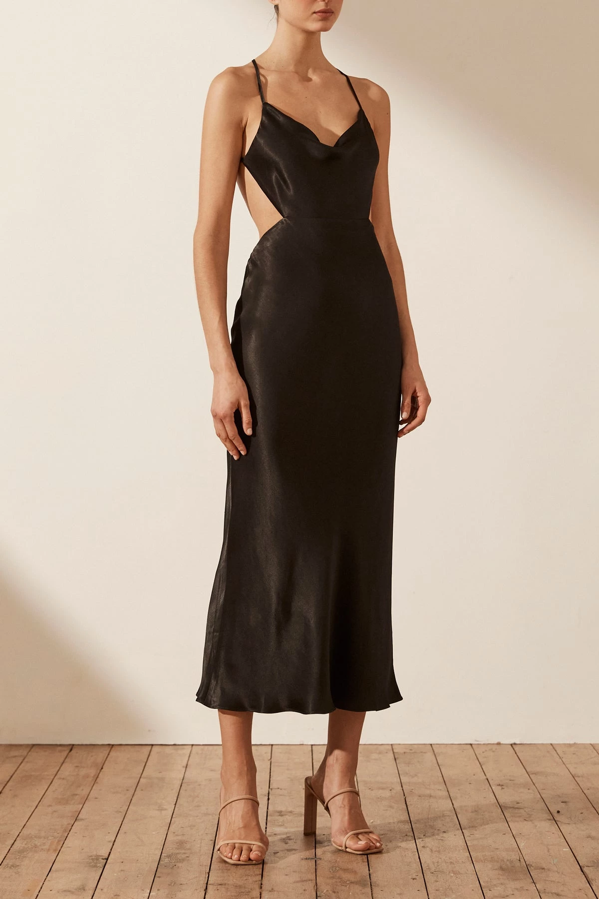 Shona Joy THALIA BIAS CUT OUT MIDI DRESS – BLACK DRESSES