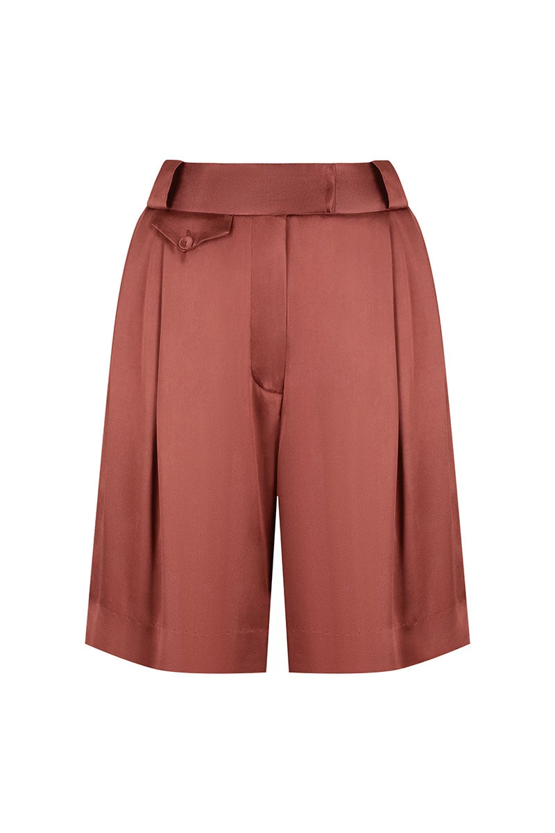 Tailored short with coin pocket in a silk touch fabric with a luxurious sheen.