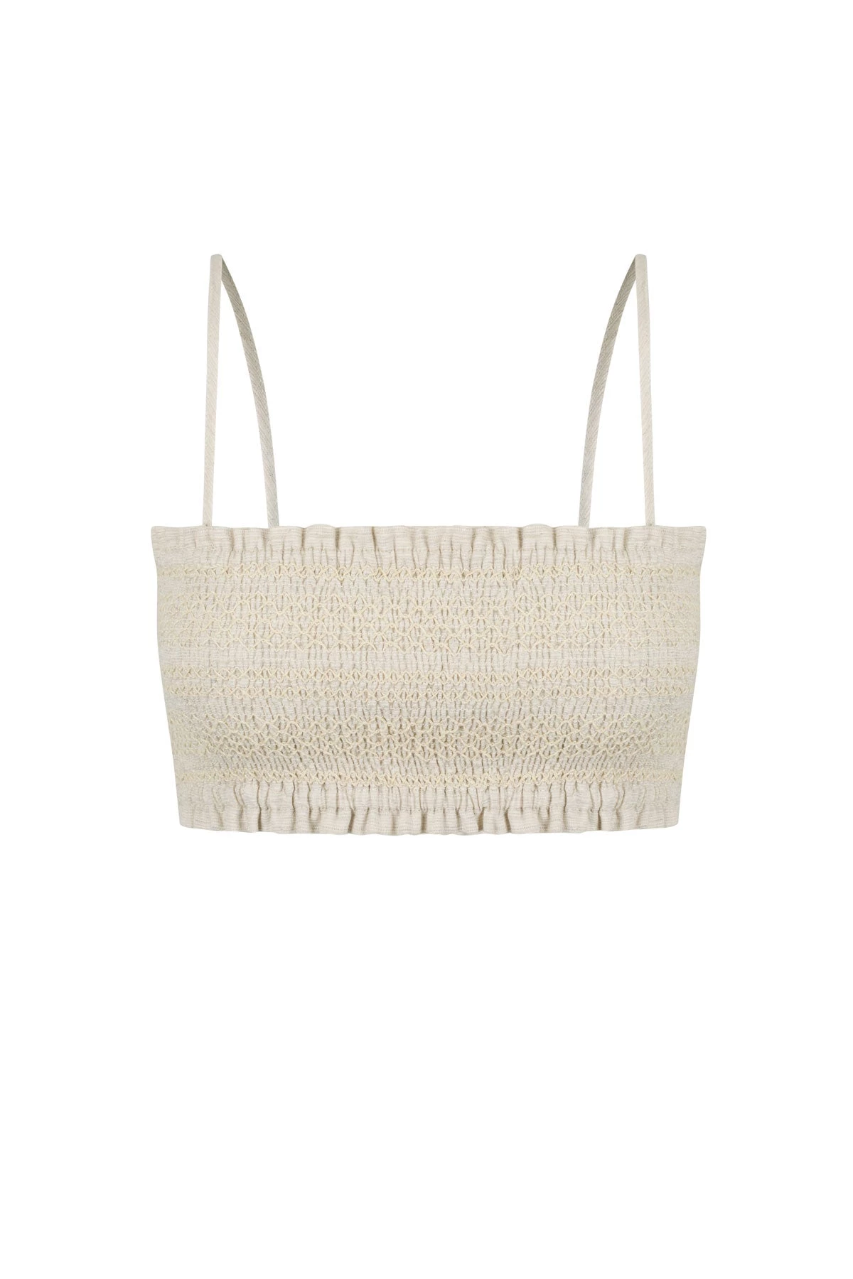 Shirred bralette in a natural linen blend fabric.