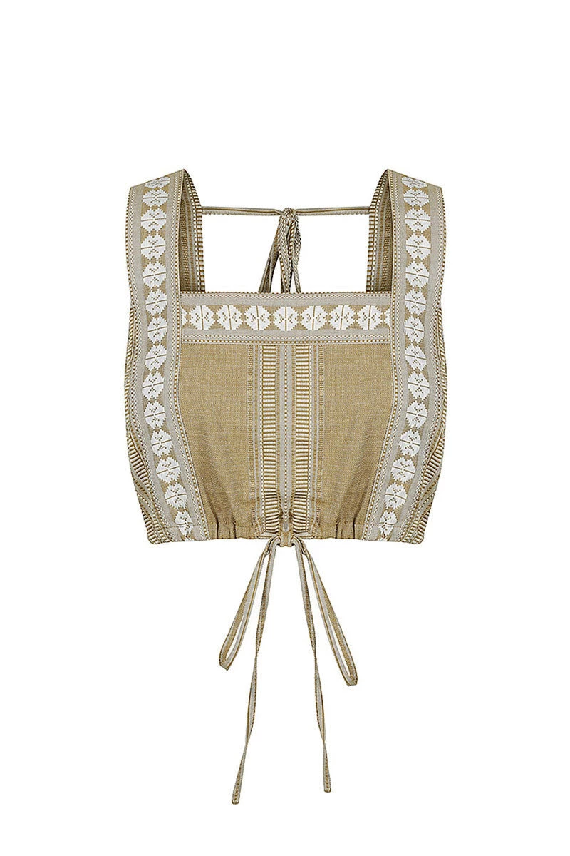 Crop top with embroidered design throughout.
