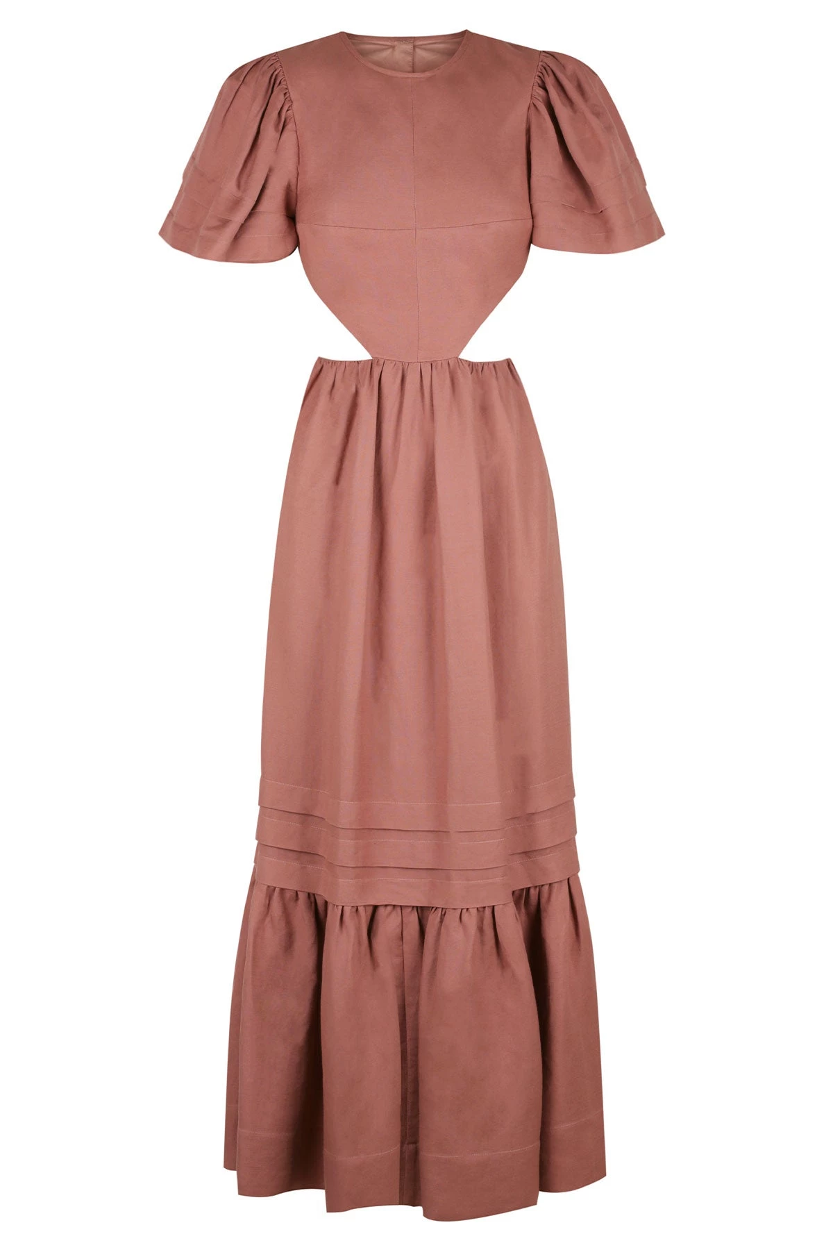 Shona Joy VEGA LINEN CUT OUT OPEN BACK MIDI DRESS – ROSE