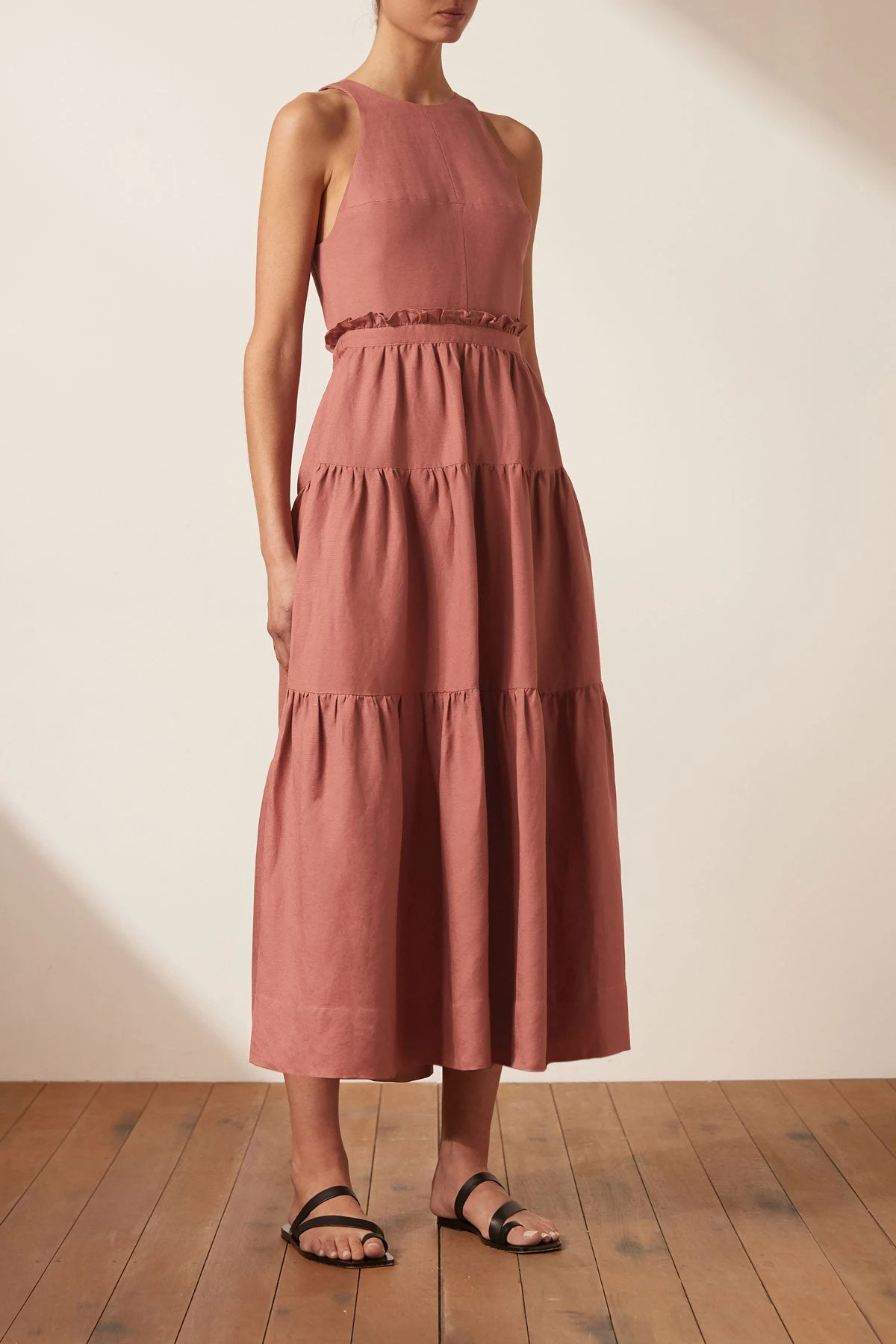 Shona Joy VEGA LINEN TIE BACK MIDI DRESS – ROSE DRESSES