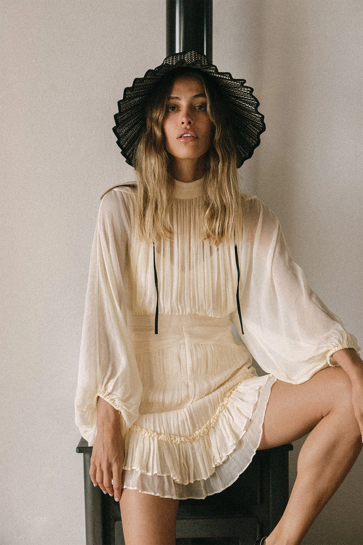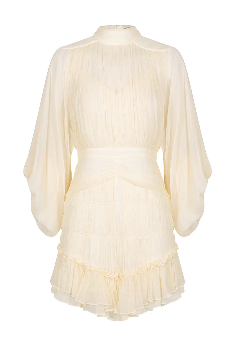 Shona Joy VICTORIA LONG SLEEVE RUCHED MINI DRESS – CREAM